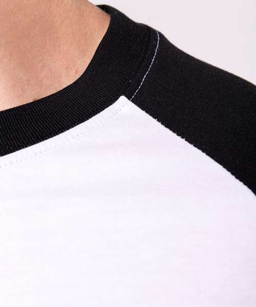 100% Cotton. Contrast raglan sleeves and neck rib. Neck rib contains elastane. Side vents. Twin needle finishing. BSCI certified. Oeko-Tex certified.